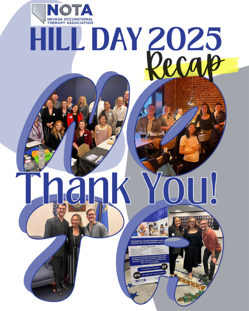 If you’re inspired by Hill Day and want to get more involved in shaping the future of OT in Nevada, join our Advocacy Action Committee. We meet monthly on the first Wednesday from 6–7 PM.